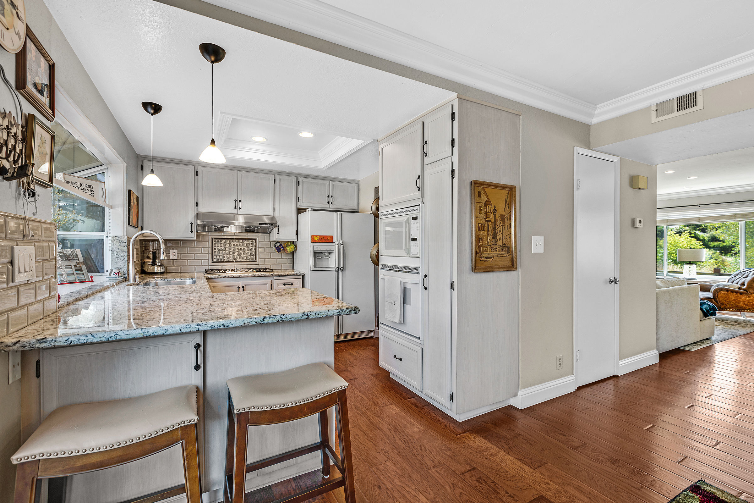 Welcome to this bright end-unit townhome in the desirable Greenbrook Townhomes community, known for its setting near open space and access to top-rated schools. This home offers hardwood flooring throughout, fresh interior paint both upstairs and downstairs, and a practical layout designed for everyday living. The main level features an open living and dining area with natural light, flowing into a well-appointed kitchen with granite counters, ample cabinetry, and a breakfast bar for casual seating. Just off the living space, sliding doors lead to a private patio area, ideal for outdoor dining & relaxing. Upstairs, all bedrooms have new paint plus updated bathrooms with clean finishes and modern fixtures. Additional highlights include an upstairs linen closet and built-in shelving in one of the closets, offering great storage throughout the home. The front porch has slate flooring and the exterior fence has been newly replaced by the HOA within the last six months. The home offers a well-balanced mix of comfort, function & a beautiful setting with a 2 car garage & guest parking nearby. HOA amenities include: access to 2 community pools, clubhouse, playground, tennis courts, & greenbelt.