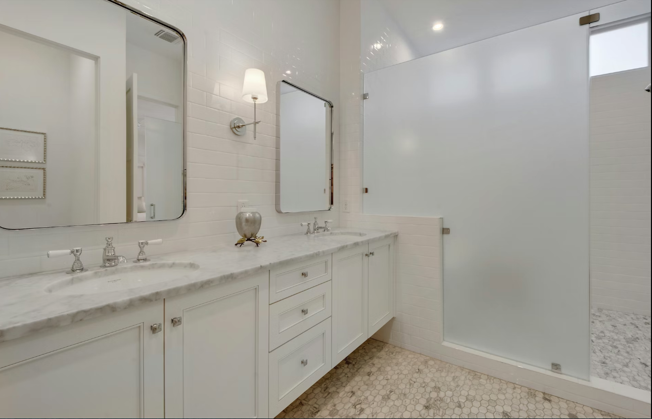 Indulge your culinary passions with top-of-the-line Bosch and Thermador appliances, floor-to-ceiling cabinetry, and exquisite Bardiglio and Carrera marble countertops. Enjoy the seamless fusion of tile and wood flooring throughout, creating an ambiance of timeless beauty and warmth.