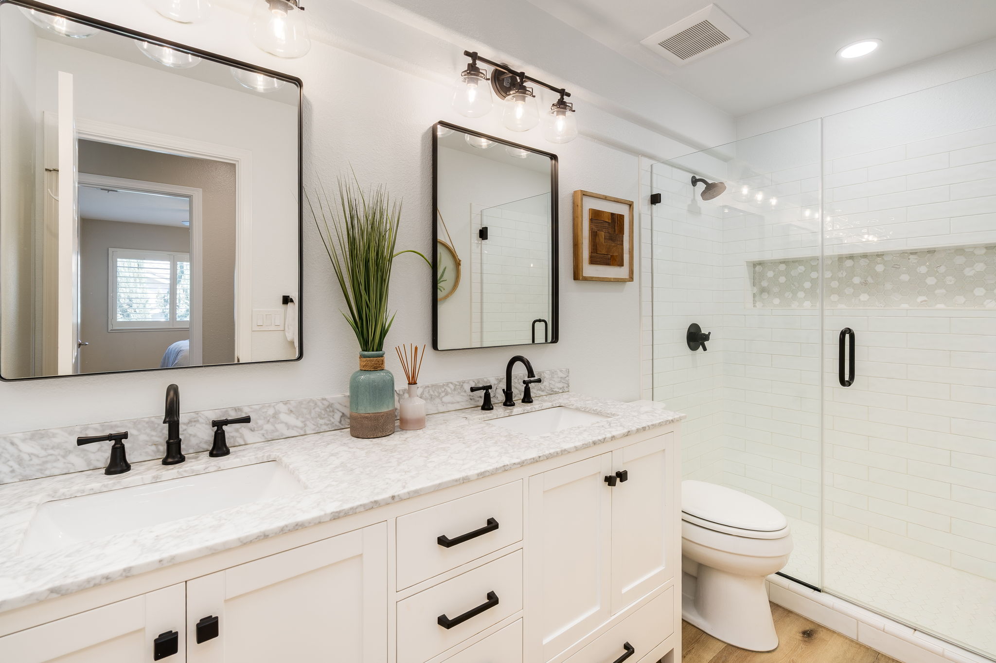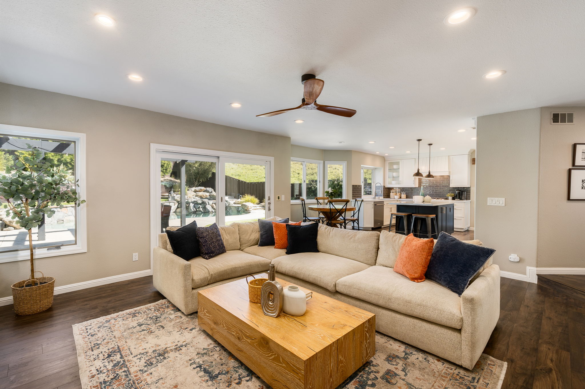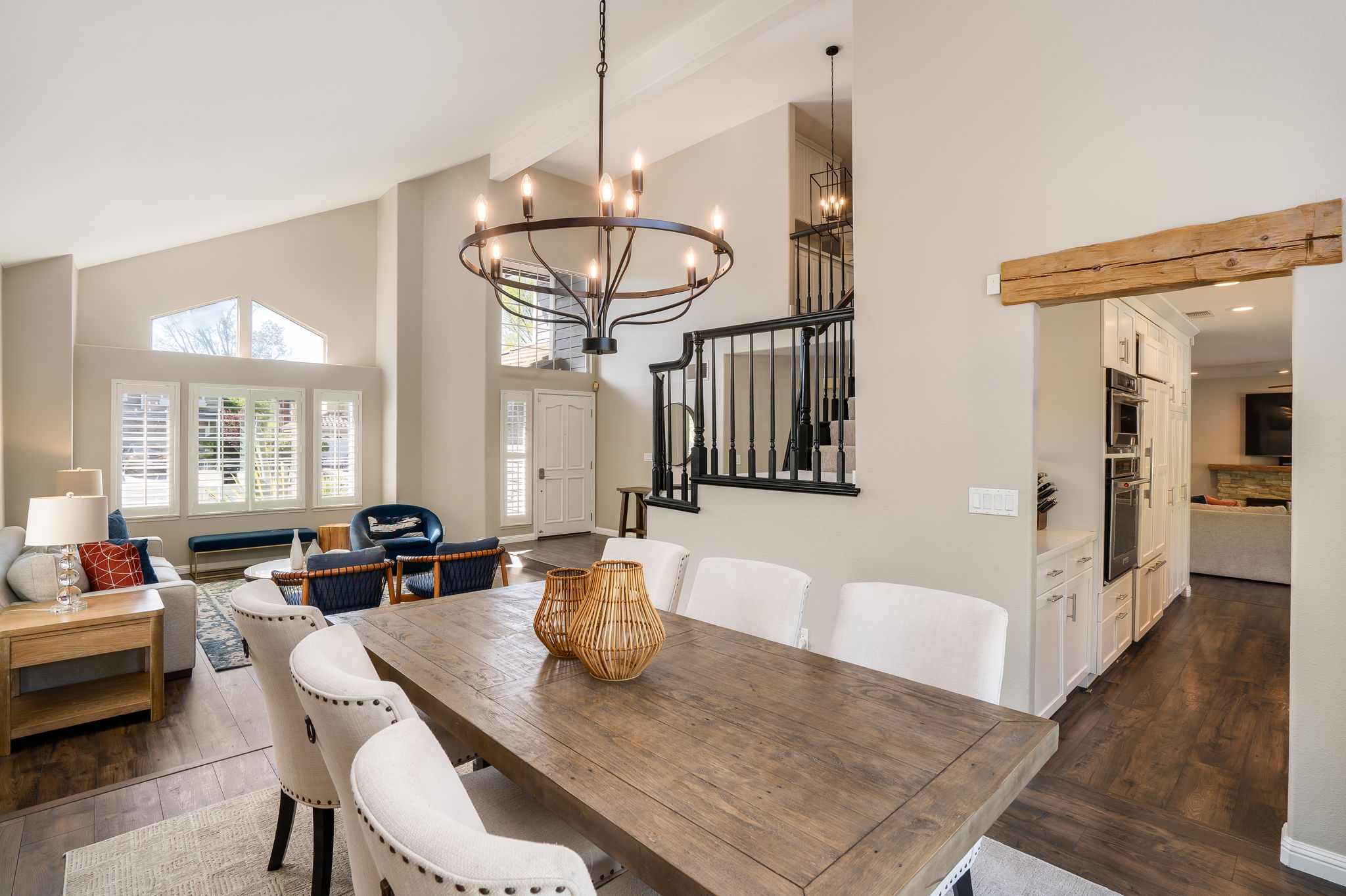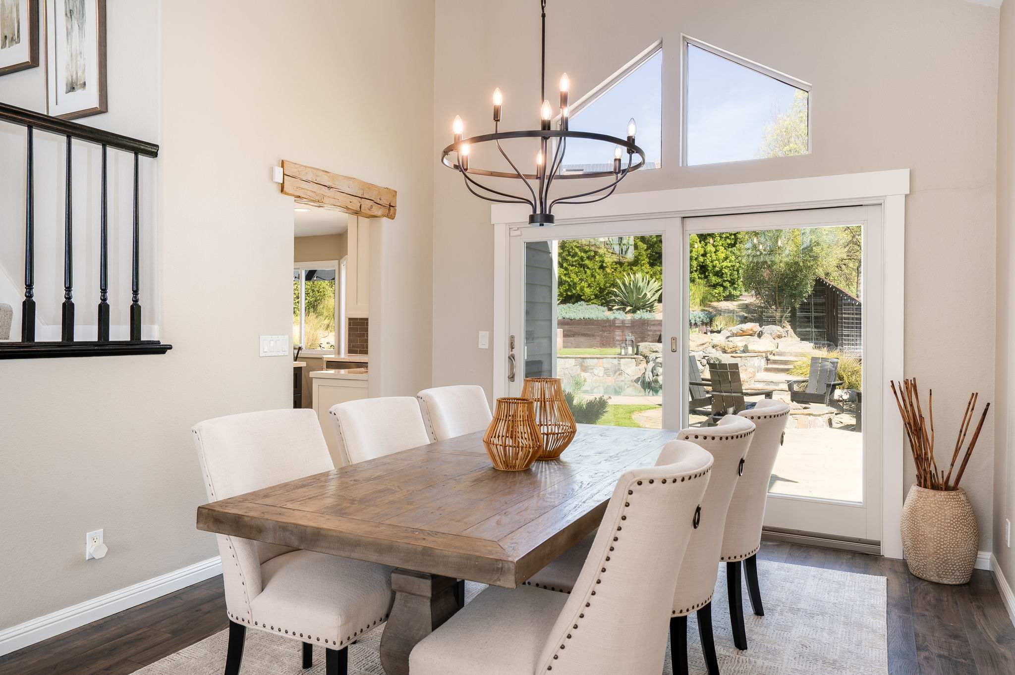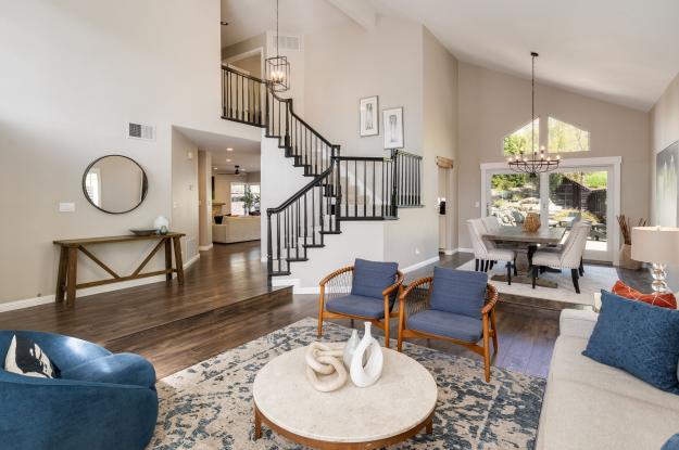 Tucked away at the end of a quiet cul-de-sac siding to open space, this Vista Tassajara home offers rare privacy & nearly $300,000 in upgrades & improvements. From pristine curb appeal to the backyard oasis, every inch of this property has been curated for a modern, high-end lifestyle. Step inside to a bright open floor plan complemented by laminate plank flooring throughout the downstairs, except tile in the laundry room. The kitchen is a chef’s dream equipped w/ high-end appliances including a built-in refrigerator & double oven. In addition to the eating nook, a large island w/ barstool seating opens to the family room featuring a stacked stone fireplace, bar w/ wine fridge & cabinet storage. Downstairs also features a desirable 1st floor bedroom w/ updated full bath next door. Upstairs, the primary suite overlooks the serene backyard & includes a contemporary bath w/ freestanding soaking tub, custom tile shower & quartz countertops. Down the hall is ample linen storage & a full bath w/ custom tile & newer LVP flooring. All four upstairs bedrooms feature brand-new carpet, including an oversized room ideal as a bonus room, playroom or office. The backyard is designed for relaxing & entertaining w/ pool & spa, outdoor kitchen w/ new BBQ, built-in firepit, RV parking & more.