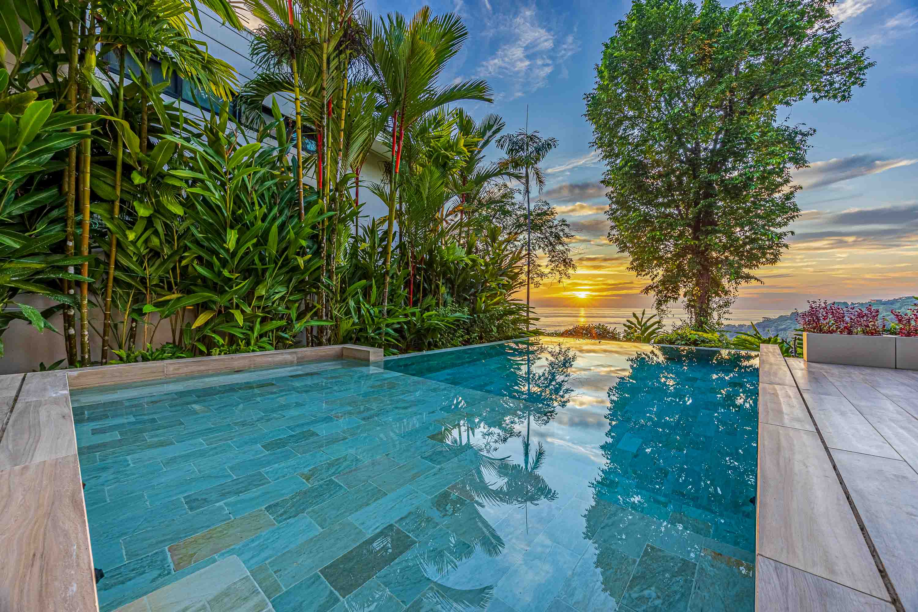 Immerse yourself in Costa Rica’s vibrant ambiance with this turnkey three-bedroom luxury villa. Perched in the most private spot of the front row, it offers breathtaking whitewater ocean views, year-round sunsets, and daily encounters with monkeys, whales, and tropical birds.