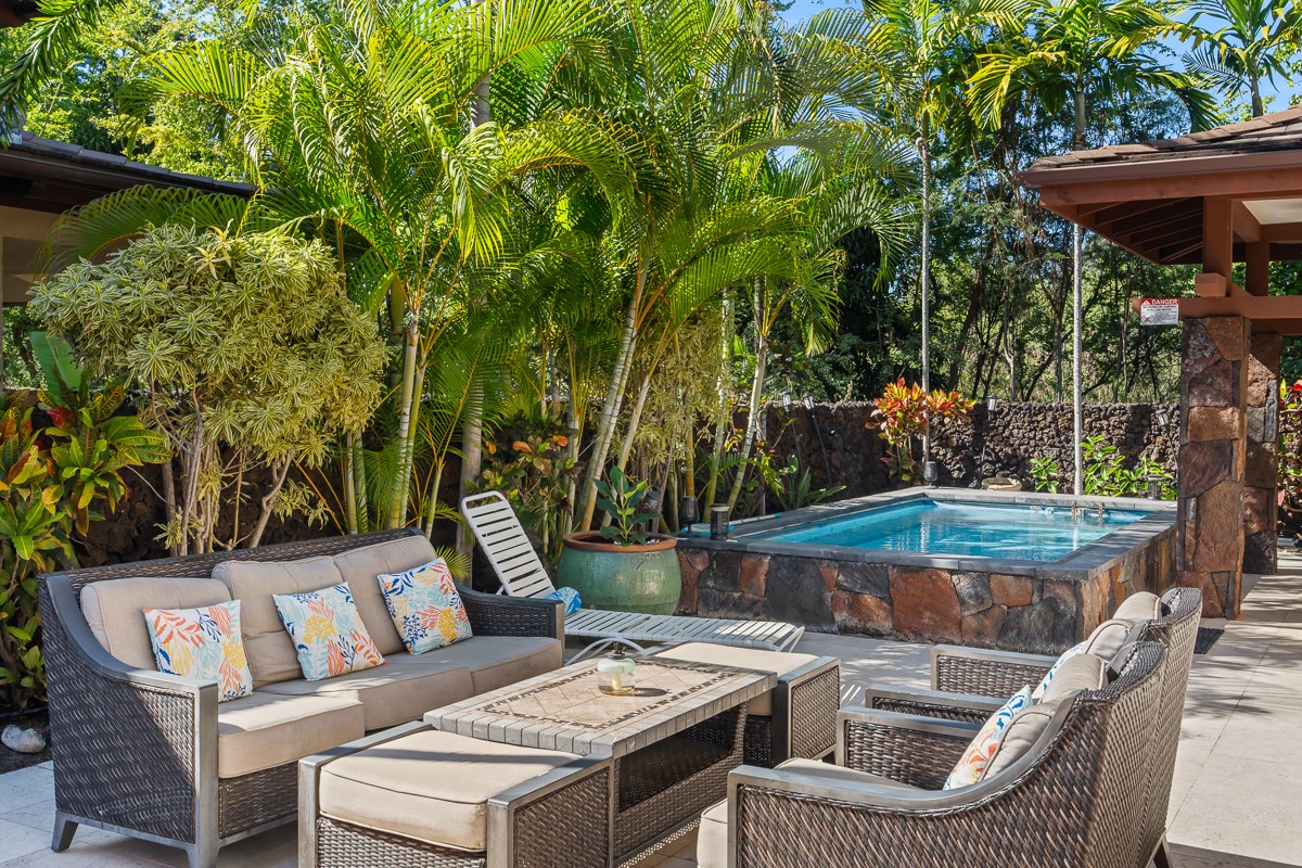 Enjoy sunset views and short walking access to the shoreline from this private island retreat. Just a short stroll away is Kona’s famous Magic Sands Beach, where you can spend your days enjoying the ocean, beach volleyball, and dining at Magic’s Beach Grill with front-row sunset views over the water — all within easy walking distance.
