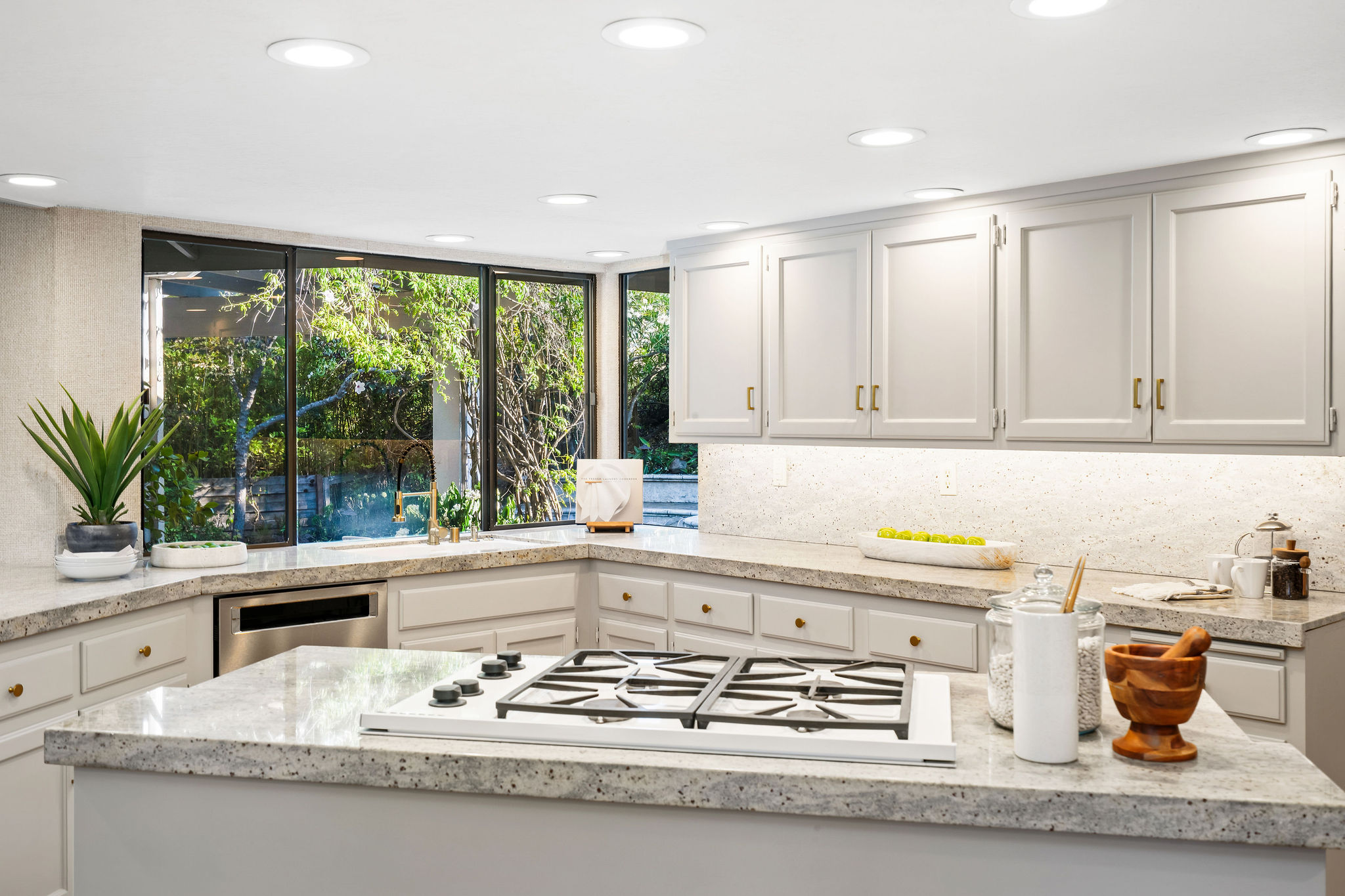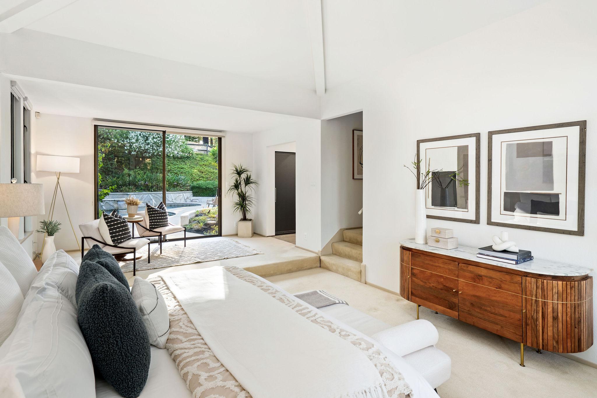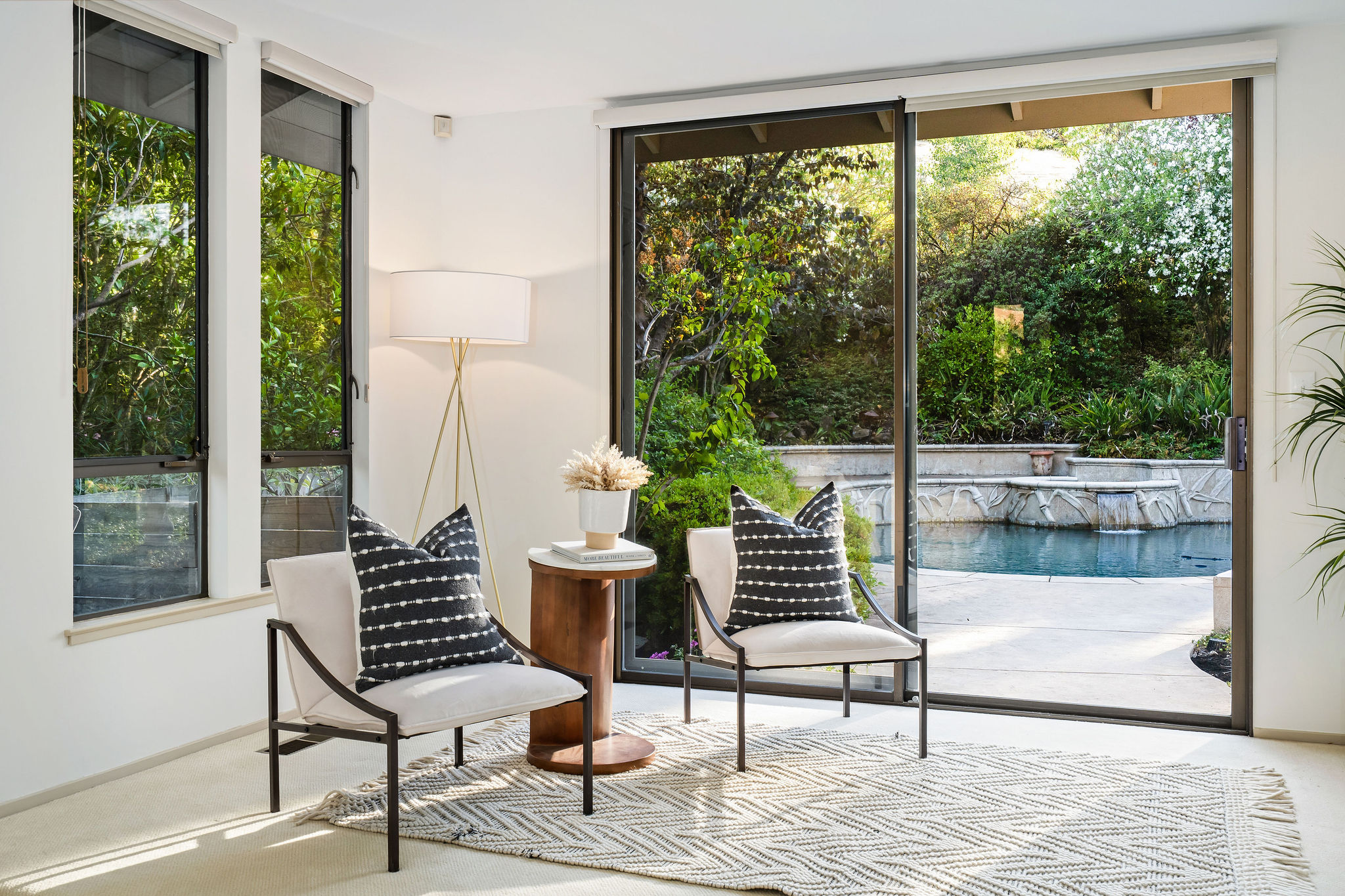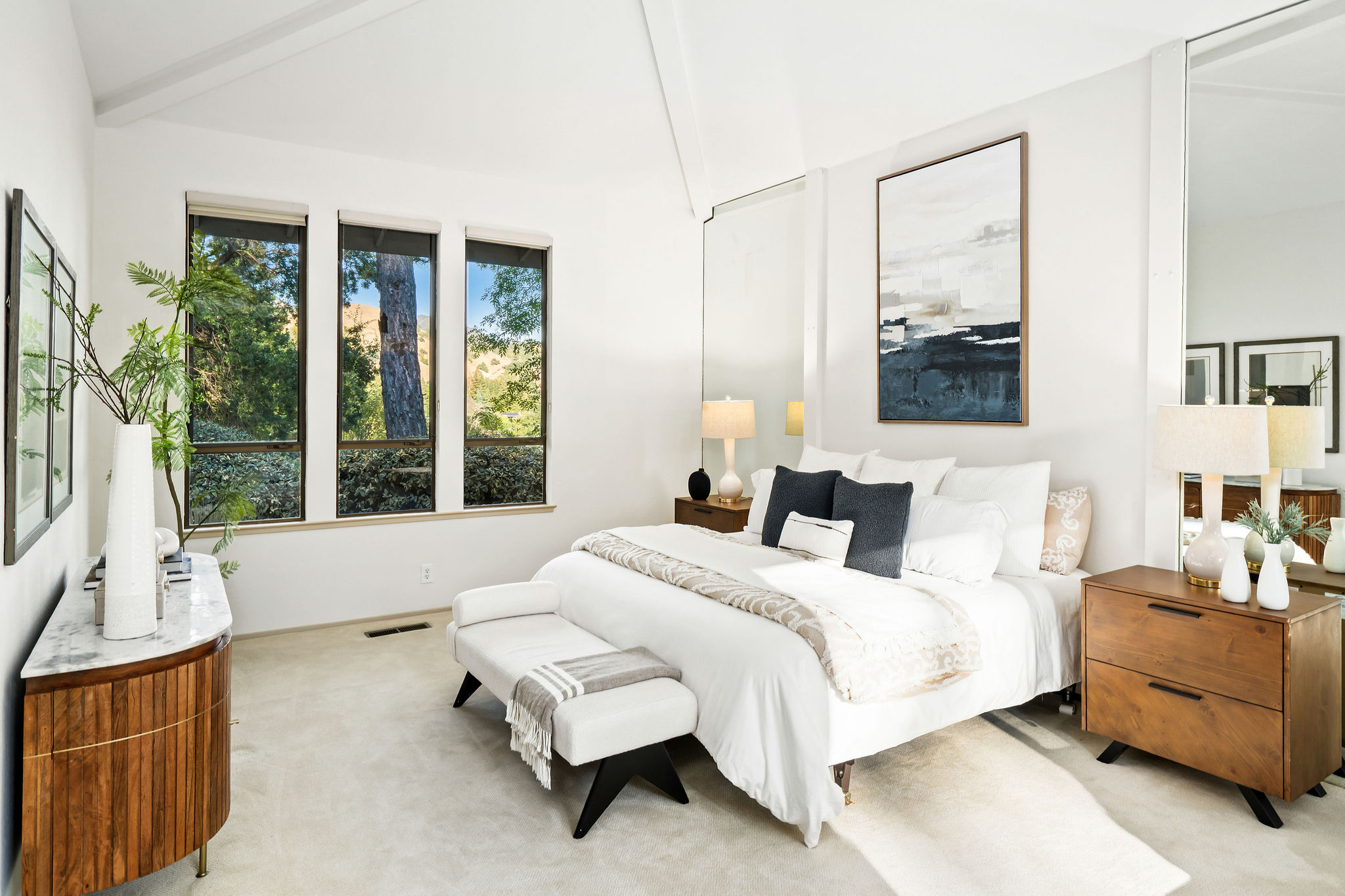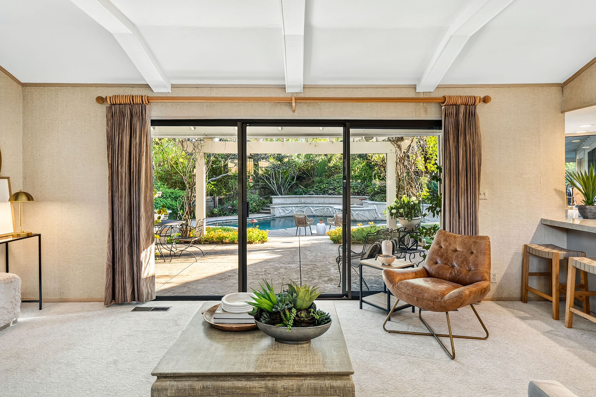 Perched on a cul-de-sac in the desirable Whitegate neighborhood, this single-story Harold Smith-built home offers a versatile floor plan & Mt. Diablo views. Inside, natural light, a neutral palette & light oak hardwood floors welcome you. Adjacent to the formal dining room, the sunken living room features a brick fireplace & walls of windows framing hillside views. The spacious kitchen boasts a center island, breakfast bar, double ovens, stone counters, walk-in pantry, built-in desk & nook, opening to the family room w/fireplace & slider to the patio. Three secondary bedrooms include closet built-ins, one w/a desk. Hall bath offers a soaking tub & stall shower. The private primary suite includes vaulted ceilings, sitting area, dual closets & remodeled bath w/dual sinks & make-up vanity. Outdoors, enjoy a pergola-covered patio, pool/spa w/cascading waterfall & lush landscaping. Other features include 3 car garage, new roof installed June 2025, owned solar & Tesla backup battery. Near top-rated schools & trails.