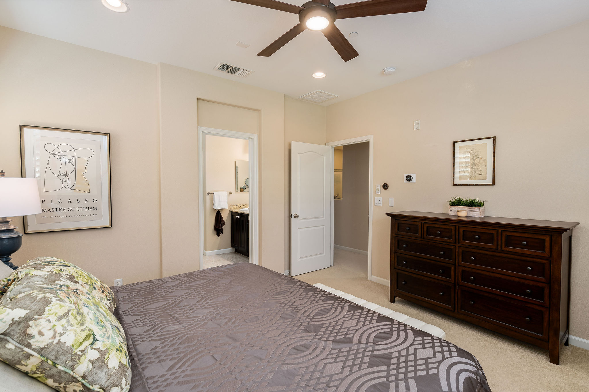 stainless steel appliances, a walk-in pantry, breakfast bar, and plentiful storage. Interior access to the attached two-car garage with custom cabinetry and EV-ready outlet adds everyday convenience.