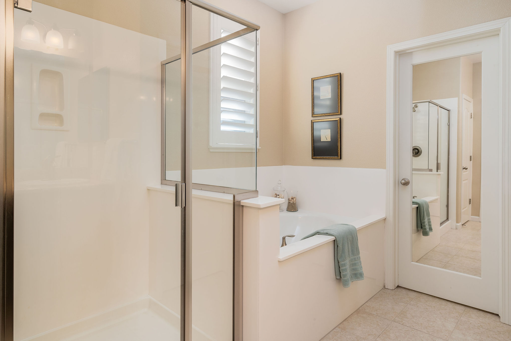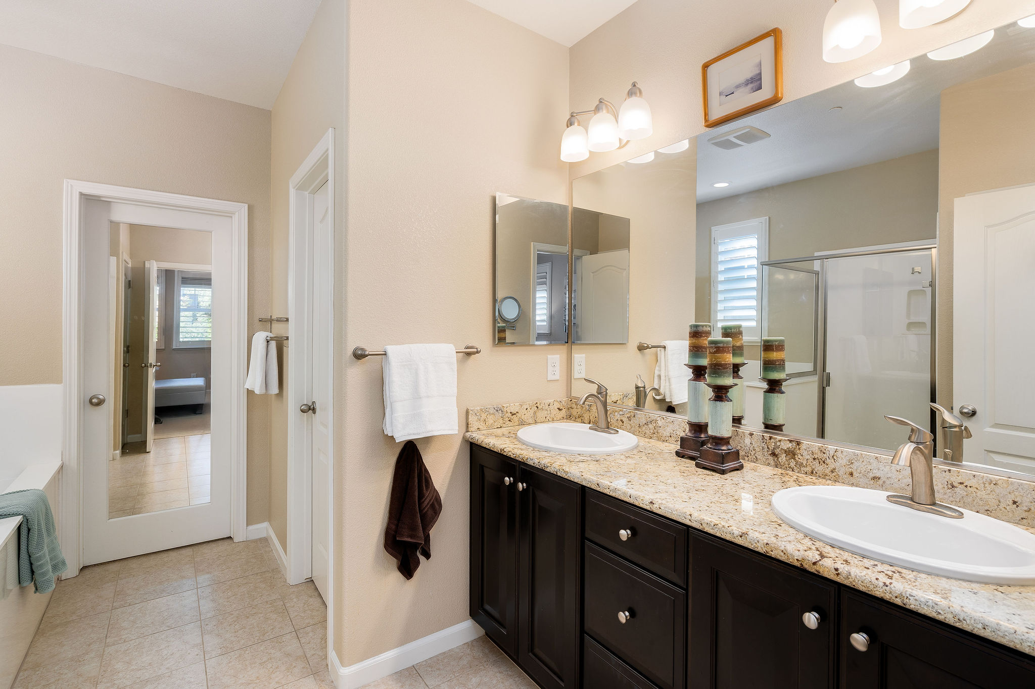 Upstairs, the spacious primary suite boasts a walk-in closet, dual vanity, soaking tub, and step-in shower. Two additional bedrooms, a full bath, and a laundry room on the same level make daily living effortless.