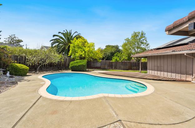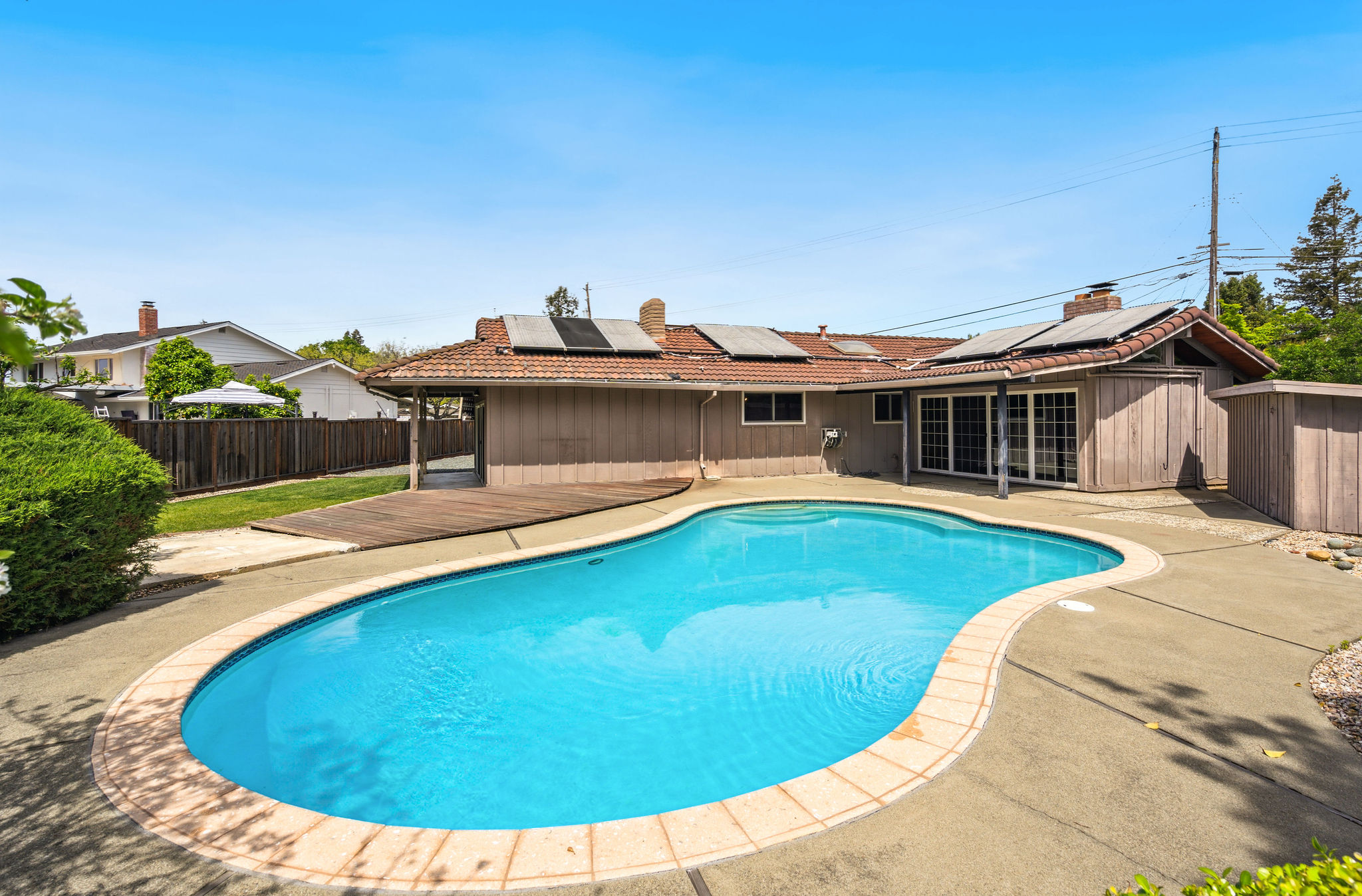 Situated in the desirable Northgate neighborhood on a large flat lot, this single-story home features 2 bedrooms with a room to create a third bedroom, and 2 bathrooms. Ready to put your own touch on it, this charming 2606 SF home offers parquet and hardwood flooring, and neutral paint throughout. Illuminated by a skylight, the kitchen is appointed with a breakfast bar, gas stovetop and nook that seamlessly flow into the family room. The quintessential family room boasts a fireplace, built-in bookcases, vaulted ceilings, and a sliding glass door that leads to the backyard patio. Perfect for entertaining, the formal dining room features a two-way fireplace that connects to a grand room with a wall of sliding glass doors, providing an ideal space for a third bedroom or living room. The primary suite has dual closets, an ensuite bathroom, and direct access to the side yard. Additional highlights include a secondary bedroom, a full hall bathroom and laundry room. Outside, enjoy the privacy of a fully fenced backyard, complete with a sparkling swimming pool, two storage sheds, patio and a lush lawn. There is also a two-car garage and plenty of space for RV/boat parking. Conveniently located near Oak Grove Swim Association, Arbolado Park, The Orchards Shopping Center, and top schools like Foothill Middle School and Walnut Acres Elementary.