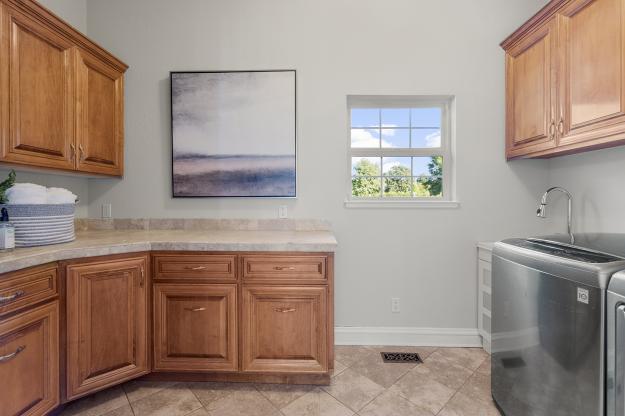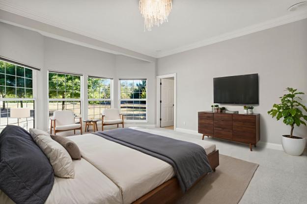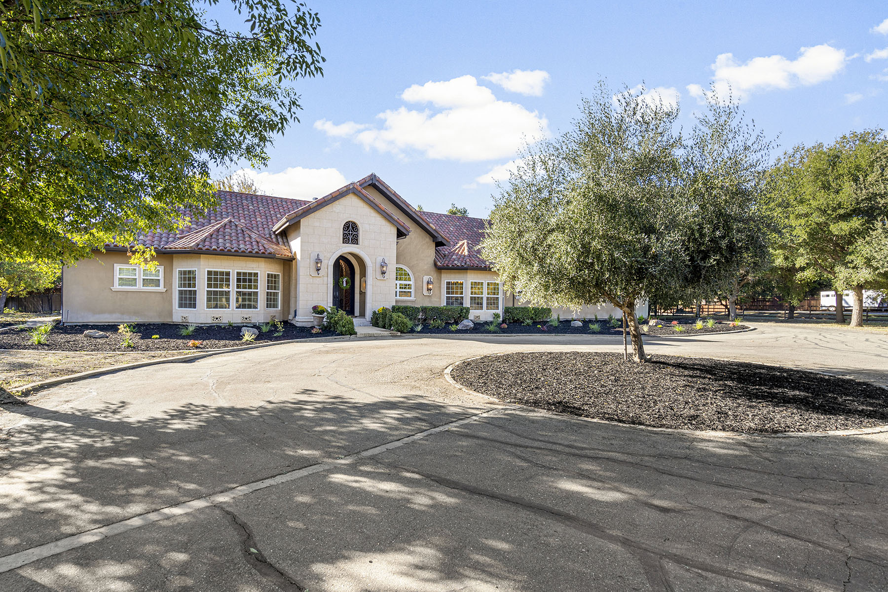 Set on a flat 5.35-acre lot, this single-story estate spans over 5,373 square feet with six bedrooms, a bonus room, and 3.5 baths — offering flexibility for family and guests alike.