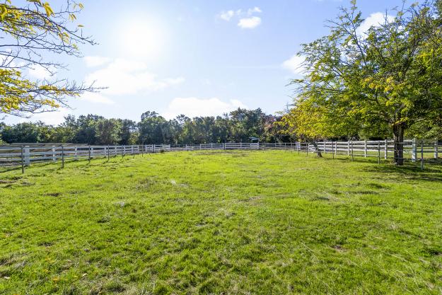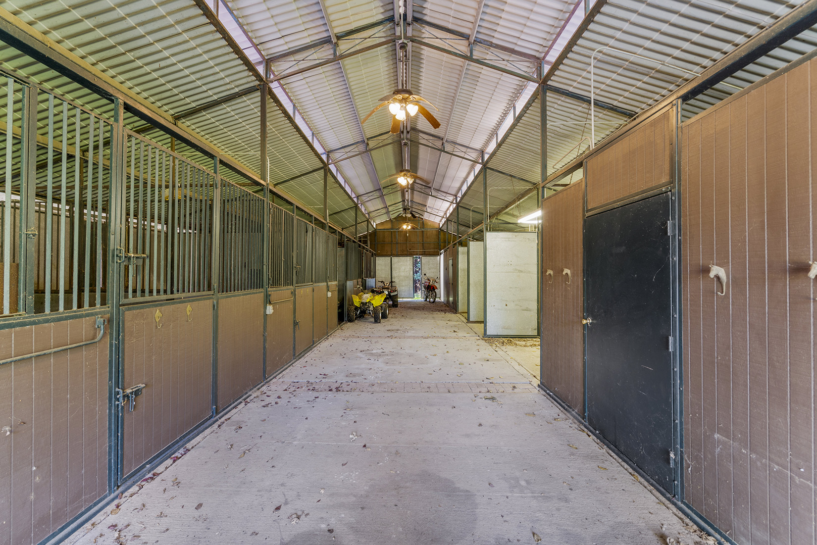 For the equestrian enthusiast there is a six-stall barn with birthing stall, tack room, storage area, and full bath, plus multiple fenced pastures and space for an ADU or additional outbuildings.
