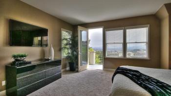 Perched high on the ridge in west Dublin’s highly desirable neighborhood of Hansen Hill, is a beautifully upgraded traditional home with stylish contemporary accents. Built by Warmington Homes in 2000, this 3,430 square foot Hearthstone model features sweeping views of the Tri-Valley, distant hillsides and city lights from just about every room in the home. The Martin Canyon Creek trail and greenbelt provide backyard privacy and tranquility. The trail connects to the new Dublin Hills Regional Park.