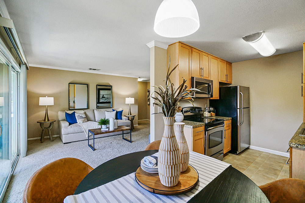 Resort-style living at this amenity-rich condo conveniently located near downtown Walnut Creek. This upper unit showcases 2 bedrooms, 1 bathroom and an open concept living area. The spacious living room flows into the dining area. The gourmet kitchen features stainless steel appliances and granite counters. Down the hall, there are 2 bedrooms with closet organizers, a full bathroom, a hall closet and a laundry closet with a stackable washer and dryer. Relax on the balcony overlooking the community pool and clubhouse. This unit includes a 1 car covered carport with a storage locker, as well as guest parking. Bordering the Diablo Hills Golf Course, Club Villas offers two pools with a clubhouse, fitness center, sport court, bocce ball court, and tennis courts. Don't miss this centrally located condo close to Walnut Creek BART, Target, and downtown shopping/restaurants. Nearby recreational amenities include Diablo Hills Golf Course, Heather Farms Park, The Iron Horse Trail, and various hiking trails.