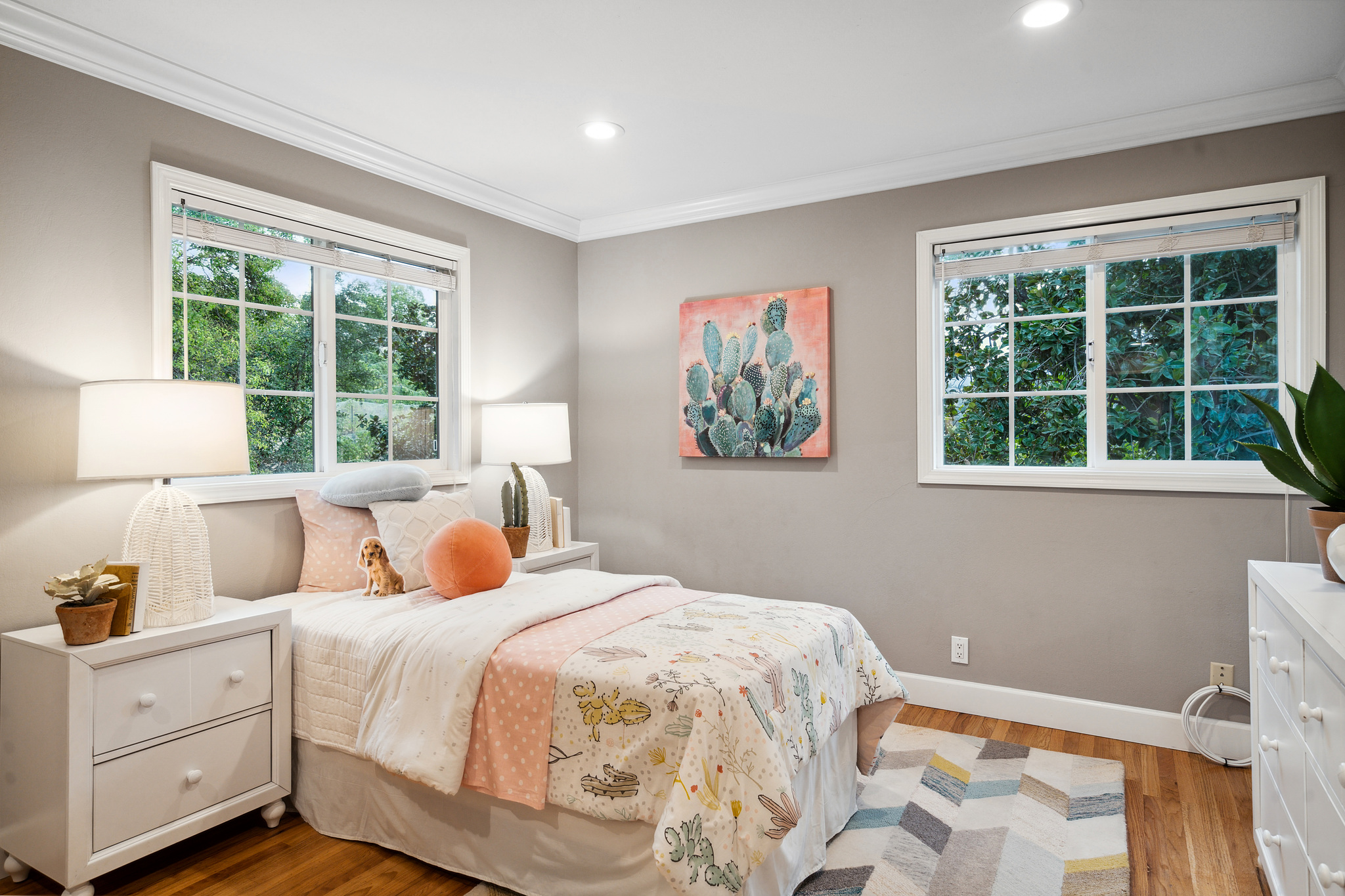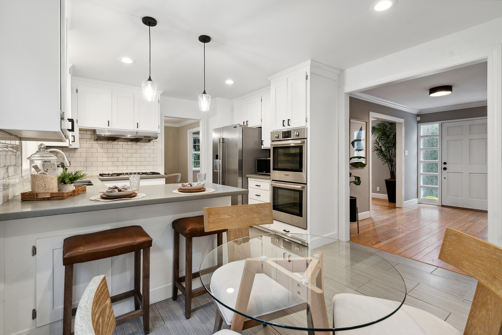 Situated along the pristine fairways of the Roundhill Country Club golf course on nearly a half-acre lot, this lovingly restored Southern Colonial home has been completely remodeled featuring 4 bedrooms with an option of a 5th bedroom, and 3 full bathrooms. The classic allure of this home is immediately evident, with its charming front shutters, stately columns, circular driveway and lush landscaping. Step inside, and you will be greeted by the warmth of original hardwood floors, accented by crown molding, newer paint, and updated light fixtures. The front-facing living room boasts a wood-burning brick fireplace, and seamlessly flows into the formal dining room, which offers easy access to the backyard. The sleek kitchen is beautifully appointed with an eating nook, top of the line stainless steel appliances, tile backsplash, quartz countertops, and breakfast bar. The cozy family room, which could serve as a 5th bedroom, has built-in bookcases, a wet bar, and a stunning full bathroom across the hallway. Ascending up the iron rod staircase, you will find the oversized primary ensuite adorned with dual closets and a gorgeously remodeled bathroom. Down the hall, there are 3 generously sized bedrooms all boasting mirrored closets doors and sharing an updated hall bathroom. Recent upgrades include a brand-new roof installed in 2022, a new HVAC system installed in 2023, as well as newer windows. Step into the backyard, where a pergola gracefully shades the patio adorned with thriving grapevines. The expansive yard offers a lawn, flourishing olive and lemon trees, an herb garden, and ample space to create your private poolside oasis/ADU. The 3-car garage has epoxy floors, laundry, and access to the backyard. Ideally located near top rated schools, 680 FWY access, shopping and Roundhill Country Club. First time on the market!