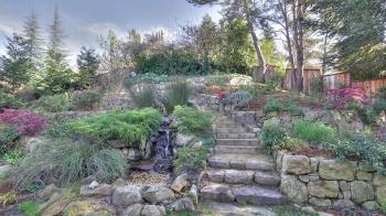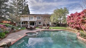 Entertain on a grand scale or relax in tranquil privacy with hillside views on the spacious covered patio with ceiling fans, and outdoor speakers. Dry stack stone walls create a meandering staircase along a cascading waterfall to the upper level landing. There you can enjoy breathtaking views of Mt. Diablo and the Las Trampas Ridge. Beautifully landscaped, the backyard also features a sparkling Pebble Tec pool, mature redwoods and manicured gardens with flagstone walkways with indoor Aqualink control for pool, hot tub and outdoor lighting.