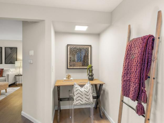 Stunning end-unit townhome completely remodeled, boasting over $100k in upgrades situated in the highly desirable Carroll Ranch neighborhood with 3rd bedroom potential. From the moment you step inside, you'll be captivated by the modern luxury and thoughtful design. Throughout the interior, there are brand new high-efficiency windows and sliding doors, newer light fixtures, a neutral paint palette, and all new hardwood floors adding sophistication and durability. Vaulted ceilings accentuate the spacious living room beckoning with a new stone surround gas fireplace. Adjacent to the living room, the dining area is centered around a beautiful chandelier and boasts a large bay window and sliding glass door with access to the backyard, seamlessly blending indoor and outdoor living. Backing to the greenbelt, the backyard has a wrap-around deck which is perfect for outdoor entertaining or a quiet retreat. The sleek kitchen is a showstopper featuring new Kraftmaid soft-close cabinets, new granite countertops, new tile backsplash, and brand new stainless steel appliances. On the main floor, there is flexible use space that could be used as a family room, playroom, den or can easily be converted into a third bedroom. In addition, a half bathroom can be modified to a full bathroom downstairs. On the second floor, you'll discover two massive, light-filled primary suites offering dual mirrored closets and remodeled bathrooms that exude modern elegance. Additional highlights include an attached 2-car garage with interior access and in-unit laundry closet. The community amenities include a swimming pool, relaxing spa, and a lush greenbelt for outdoor enjoyment.