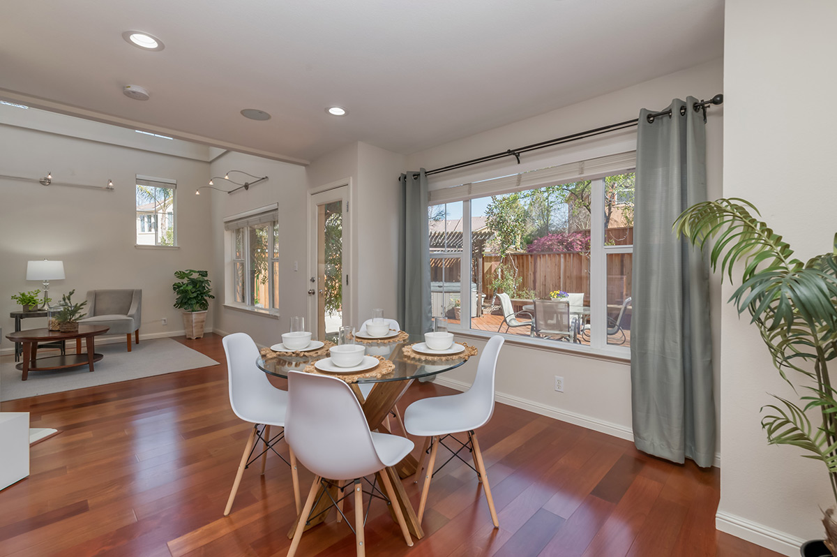 Expect to fall in love with this meticulously maintained corner townhome flaunting stunning curb appeal. In the sought after Cedar Bridge neighborhood, this rarely available home offers 3 bedrooms, 2.5 bathrooms and high end finishes throughout. Greeted by soaring ceilings, an abundance of natural light and hardwood flooring, the spacious living room is anchored by a gas insert fireplace flowing effortlessly into the dining area. The gourmet eat-in kitchen features maple cabinetry, granite counters, stainless steel appliances, a breakfast bar and a spacious walk-in pantry. On the second level, there are 3 bedrooms with crown molding including the master retreat offering two closets and vaulted ceilings, as well as dual sinks in the bathroom. Surrounded by the greenbelt, tranquility abounds in the fully fenced backyard featuring a hot tub and an expansive deck. An attached two car garage is equipped with laundry hookups and storage. Just steps away from the sparkling community pool and greenbelt and in close proximity to the new City Center, Bishop Ranch, top-rated schools, parks and 680 access.