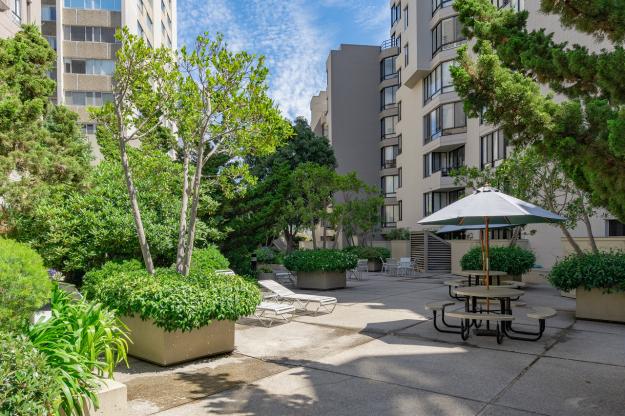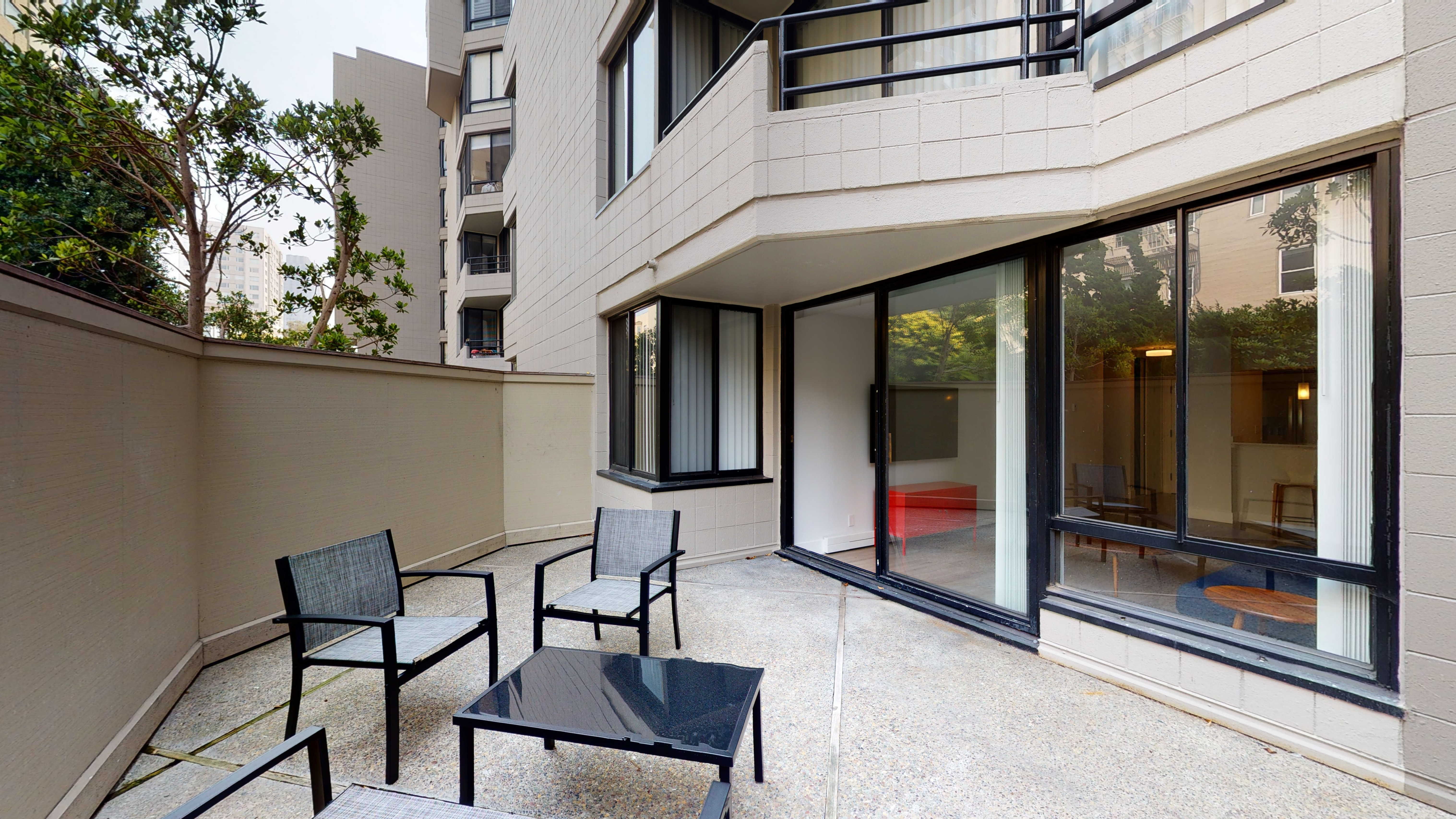 Beautiful urban condo with private patio in Downtown San Francisco. Completely remodeled from top to bottom in 2020. This kitchen features new SS appliances, custom cabinetry, quartz countertops and tile backsplash. The spa-like bathroom features floor to ceiling tiles throughout and a new modern vanity and faucet. New wide plank floors, doors, and lighting throughout. A one-car parking space is designated to this unit in the underground parking garage. La Galleria is a full-service building with a 24 X 7 security attendant, elevators, shared laundry, a fitness center and community swimming pool. HOA dues are approximately $1000 per month and include everything but electrical. Don't miss this great opportunity.